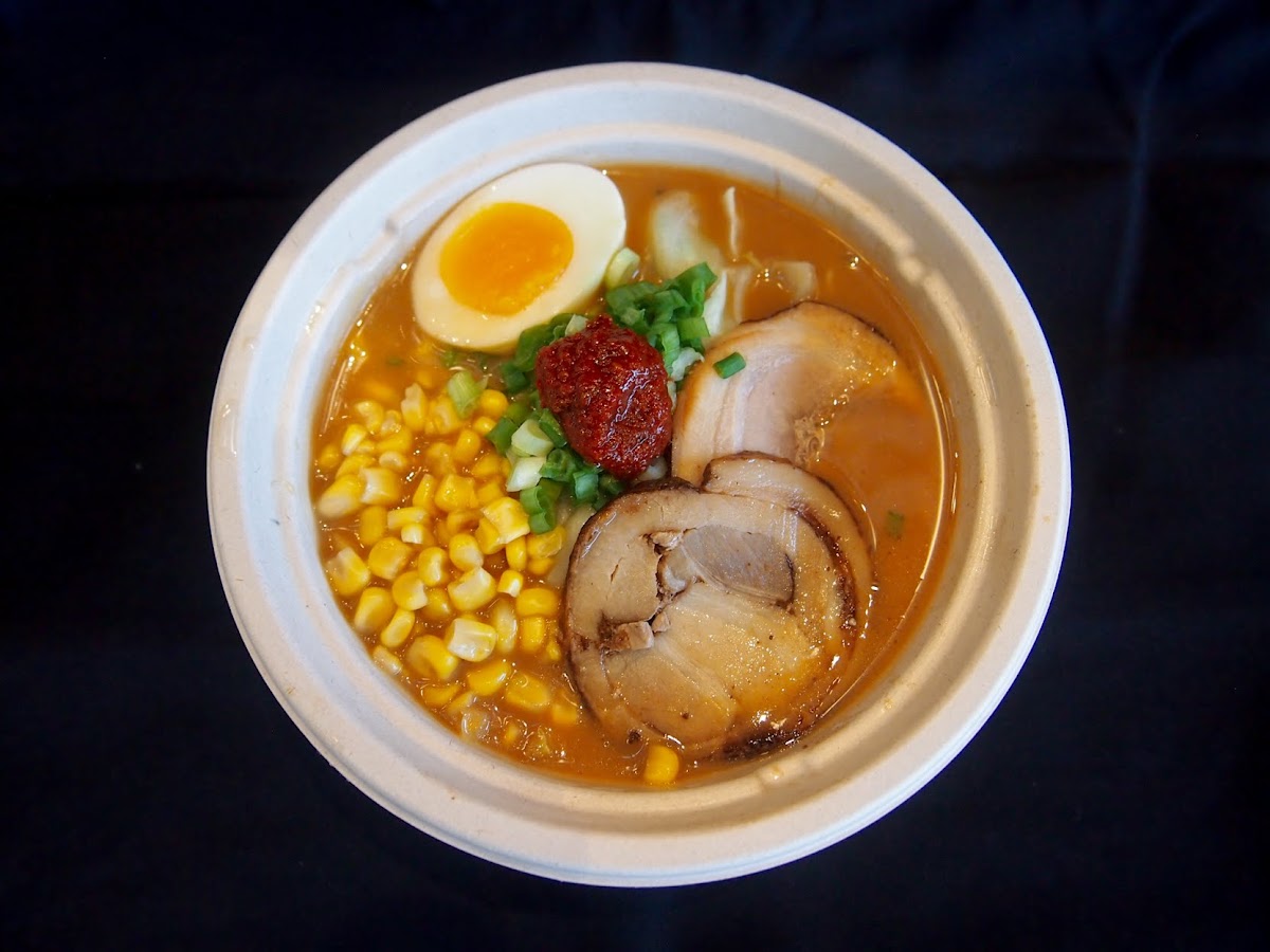 Miso flavor. Chashu, scallion, bean sprouts, corn, cabbage, and egg.